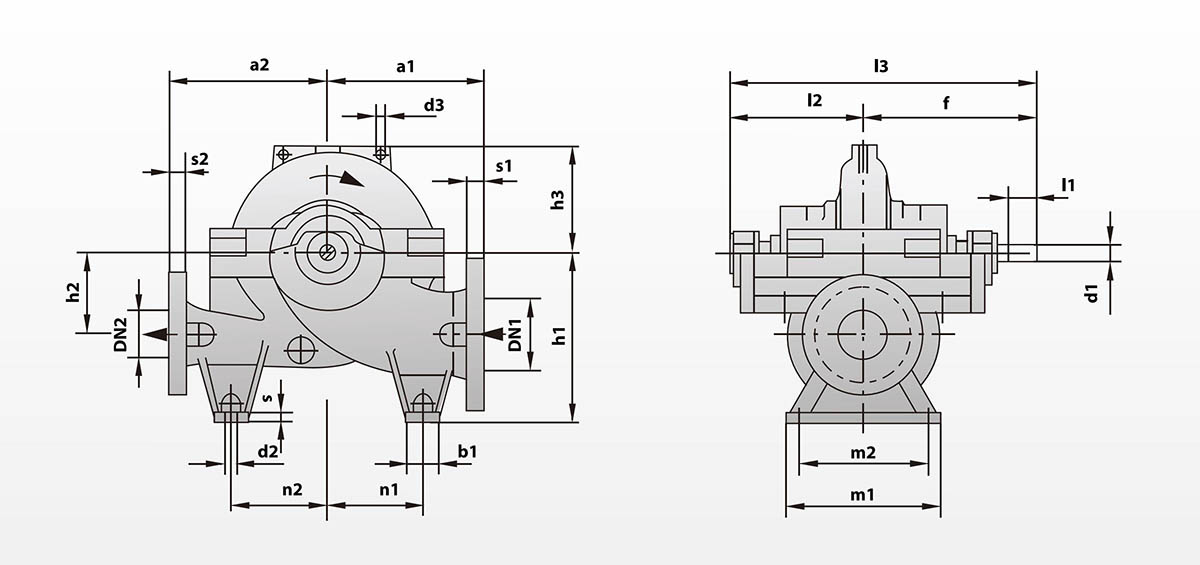 | DN1 | DN2 | s1 | S2 | a1 | a2 | d3 | f | h1 | h2 | h3 | I2 | 13 | b1 | d2 | m1 | m2 | n1 | n2 | S | d1 | 11 | ||
