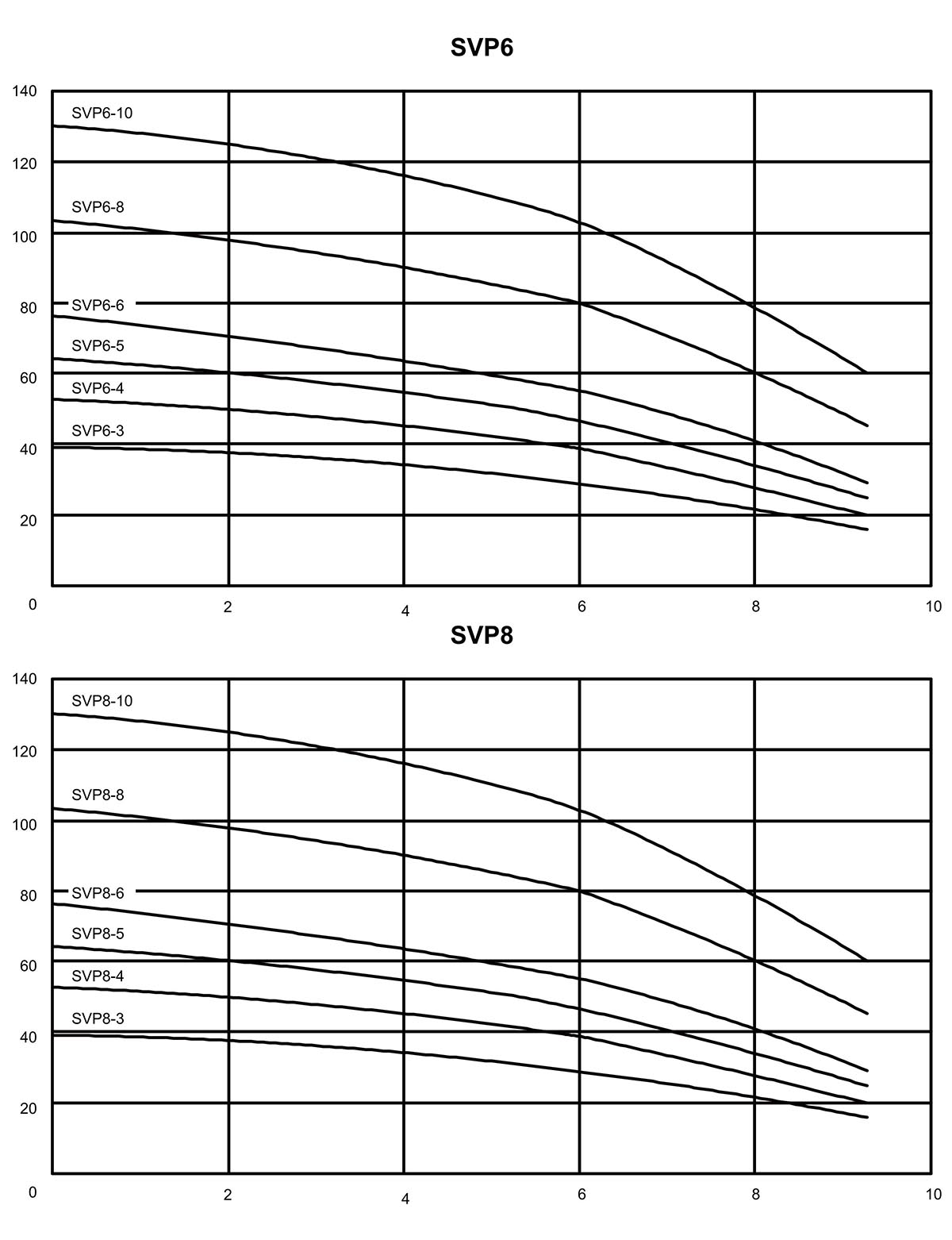 | SVP8-10 | 40×40 | 4 | 5.5 | 132 | - | - | - | - | 114 | 109 | 103 | 100 | 88 | 75 | 62 | - | - | - | - | - | - | ||||