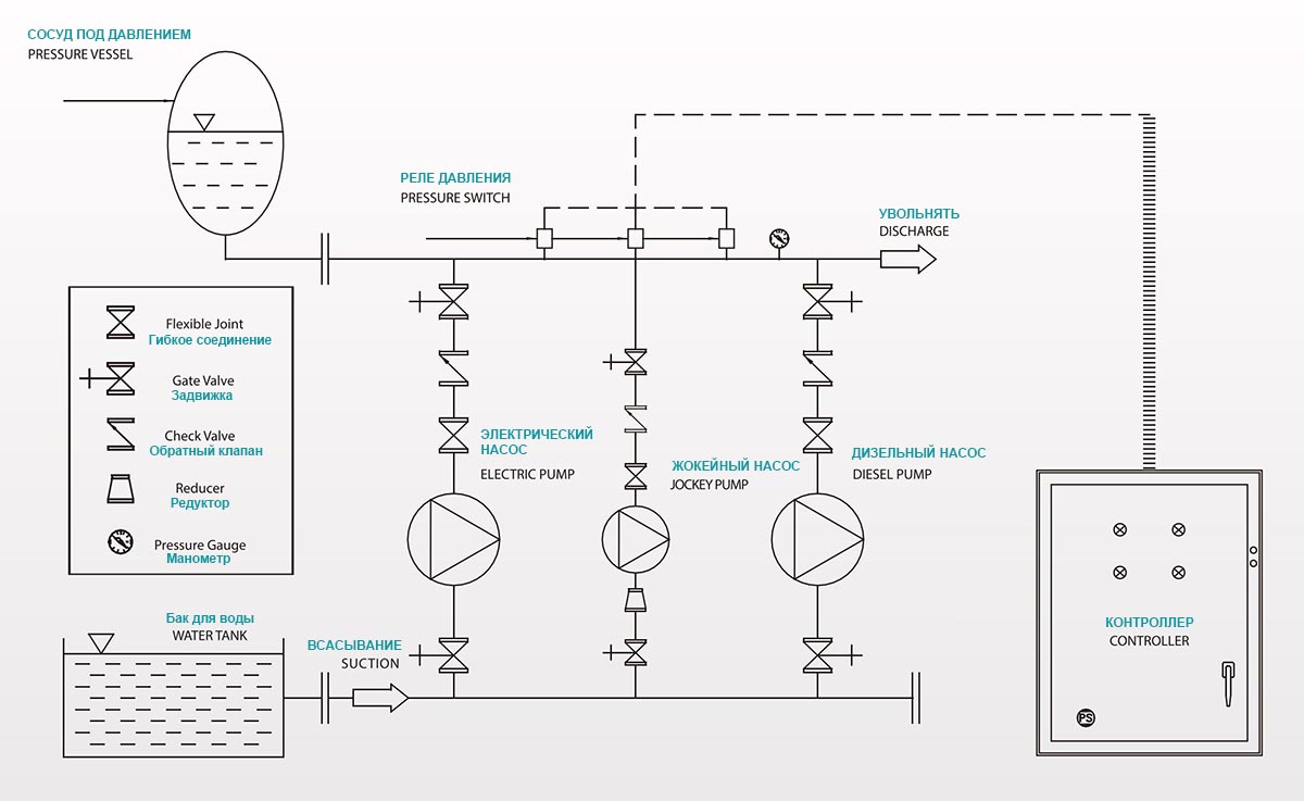 Kur presioni bie nën vlerën e caktuar, ndërprerësi i presionit aktivizon kaloratorin dhe funksionon për 10 minuta derisa presioni i sistemit të arrijë vlerën e caktuar. Nëse presioni vazhdon të bjerë, pompa kryesore fillon së pari. Nëse presioni i sistemit nuk mund të furnizohet dhe presioni vazhdon të bjerë, pompa rezervë aktivizohet.